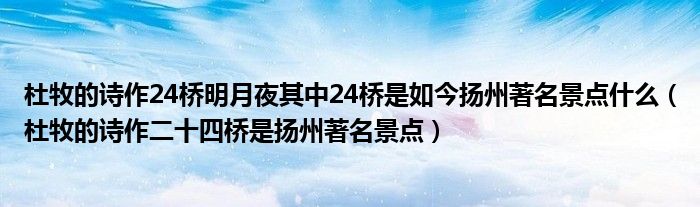 您好,今天帅帅来为大家解答以上的问题。杜牧的诗作24桥明月夜其中24桥是如今扬州著名景点什么,杜牧的诗作二十四桥是扬州著名景点相信很多小伙伴还不知道,现在让我们一起来看看吧!