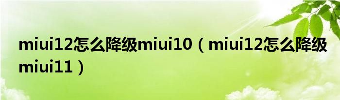 您好,今天帅帅来为大家解答以上的问题。miui12怎么降级miui10,miui12怎么降级miui11相信很多小伙伴还不知道,现在让我们一起来看看吧!