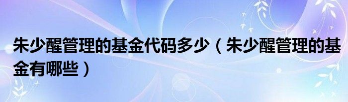 您好,今天帅帅来为大家解答以上的问题。朱少醒管理的基金代码多少,朱少醒管理的基金有哪些相信很多小伙伴还不知道,现在让我们一起来看看吧!