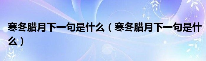 寒冬腊月下一句是什么(寒冬腊月下一句是什么),蹲一个懂行的,求解答求解答!