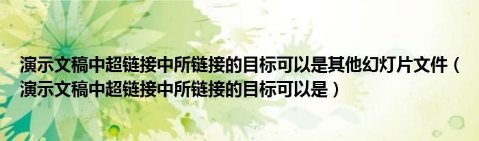 演示文稿中超链接中所链接的目标可以是其他幻灯片文件(演示文稿中超链接中所链接的目标可以是),这个怎么解决啊?快急疯了?