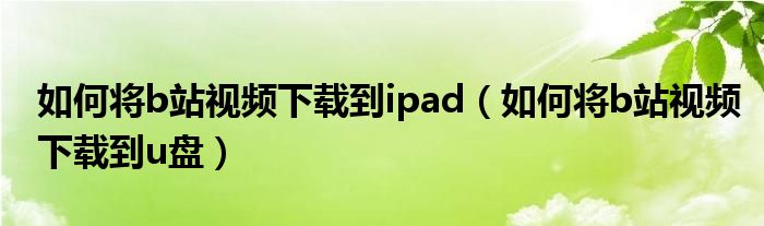 您好,今天帅帅来为大家解答以上的问题。如何将b站视频下载到ipad,如何将b站视频下载到u盘相信很多小伙伴还不知道,现在让我们一起来看看吧!
