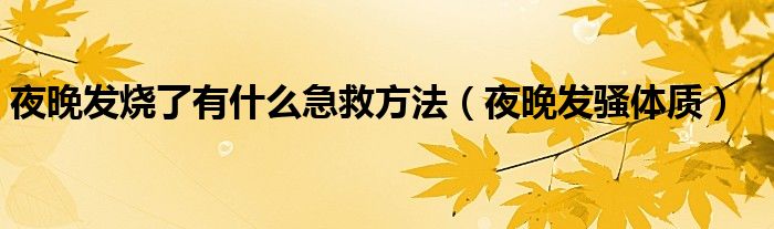 您好,今天帅帅来为大家解答以上的问题。夜晚发烧了有什么急救方法,夜晚发骚体质相信很多小伙伴还不知道,现在让我们一起来看看吧!
