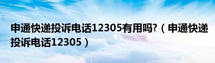 您好,今天帅帅来为大家解答以上的问题。申通快递投诉电话12305有用吗?,申通快递投诉电话12305相信很多小伙伴还不知道,现在让我们一起来看看吧!