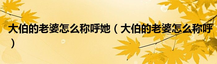 1、大伯的老婆叫什么?各地2特色各地特色叫法不一样,一般主要是大伯母,大妈妈。