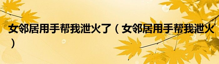 女邻居用手帮我泄火了(女邻居用手帮我泄火),急到跺脚,求解答!