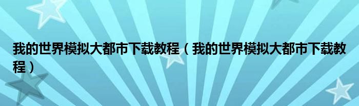 我的世界模拟大都市下载教程(我的世界模拟大都市下载教程),蹲一个热心人,求不嫌弃我笨!