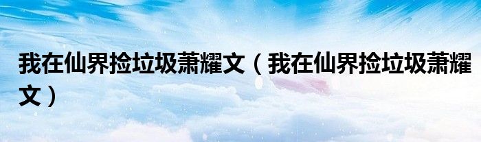 我在仙界捡垃圾萧耀文(我在仙界捡垃圾萧耀文),求解答求解答,重要的事说两遍!