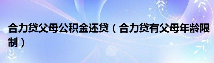 合力贷父母公积金还贷(合力贷有父母年龄限制),求快速回复,真的等不了了!