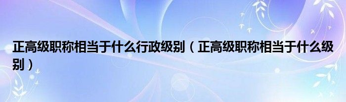 1、正高职称相当于职称的最高级,正高级别是一种待遇的级别,在每一个领域内都有一套级别职称的称呼。