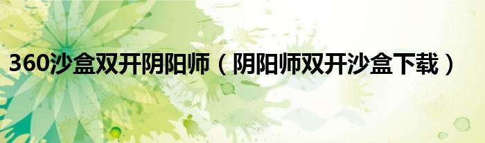 您好,今天帅帅来为大家解答以上的问题。360沙盒双开阴阳师,阴阳师双开沙盒下载相信很多小伙伴还不知道,现在让我们一起来看看吧!