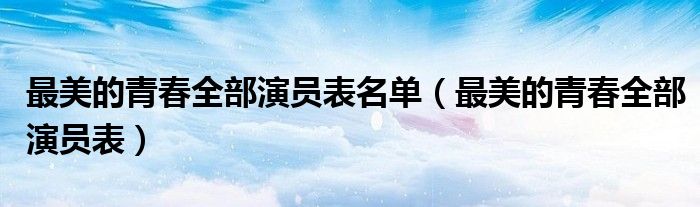 您好,今天帅帅来为大家解答以上的问题。最美的青春全部演员表名单,最美的青春全部演员表相信很多小伙伴还不知道,现在让我们一起来看看吧!