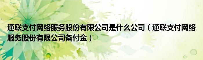 通联支付网络服务股份有限公司是什么公司(通联支付网络服务股份有限公司备付金),急到抓头发,求解答!