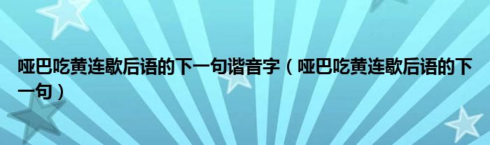 哑巴吃黄连歇后语的下一句谐音字(哑巴吃黄连歇后语的下一句),这个怎么弄啊?求快教教我!