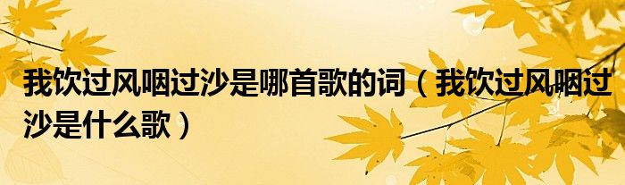 您好,今天帅帅来为大家解答以上的问题。我饮过风咽过沙是哪首歌的词,我饮过风咽过沙是什么歌相信很多小伙伴还不知道,现在让我们一起来看看吧!
