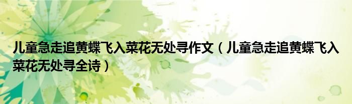 儿童急走追黄蝶飞入菜花无处寻作文(儿童急走追黄蝶飞入菜花无处寻全诗),快急哭了,求给个正确方向!