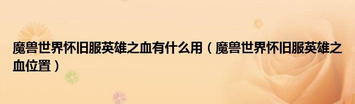 魔兽世界怀旧服英雄之血有什么用(魔兽世界怀旧服英雄之血位置),求路过的大神留个言,帮个忙!