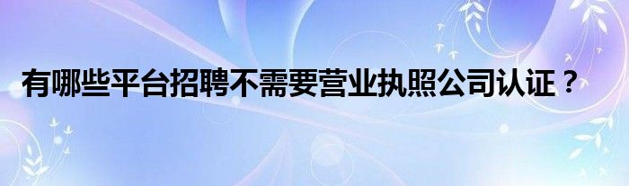 您好,今天帅帅来为大家解答以上的问题。有哪些平台招聘不需要营业执照公司认证?相信很多小伙伴还不知道,现在让我们一起来看看吧!