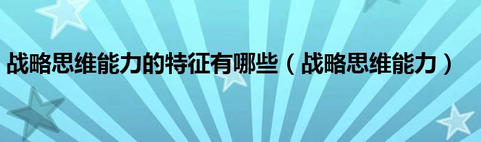 您好,今天帅帅来为大家解答以上的问题。战略思维能力的特征有哪些,战略思维能力相信很多小伙伴还不知道,现在让我们一起来看看吧!
