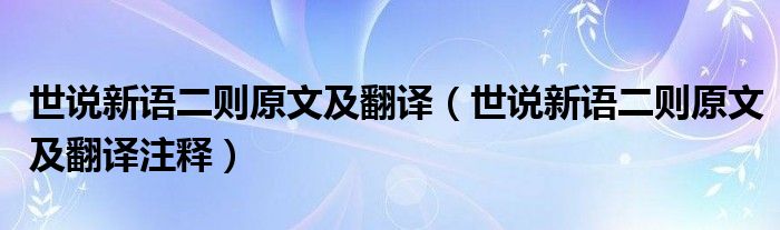 您好,今天帅帅来为大家解答以上的问题。世说新语二则原文及翻译,世说新语二则原文及翻译注释相信很多小伙伴还不知道,现在让我们一起来看看吧!