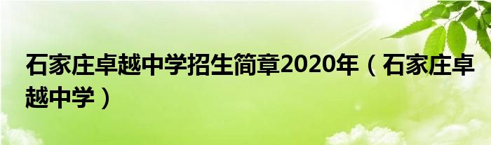 您好,今天帅帅来为大家解答以上的问题。石家庄卓越中学招生简章2020年,石家庄卓越中学相信很多小伙伴还不知道,现在让我们一起来看看吧!