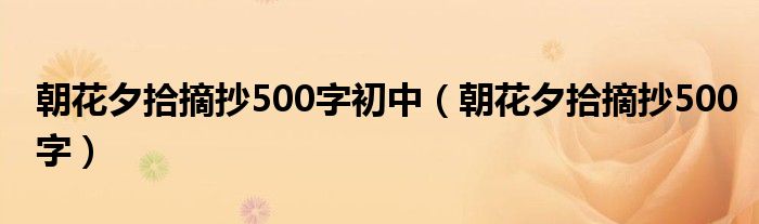 您好,今天帅帅来为大家解答以上的问题。朝花夕拾摘抄500字初中,朝花夕拾摘抄500字相信很多小伙伴还不知道,现在让我们一起来看看吧!