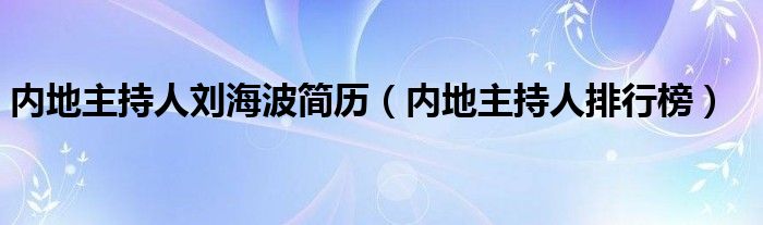 您好,今天帅帅来为大家解答以上的问题。内地主持人刘海波简历,内地主持人排行榜相信很多小伙伴还不知道,现在让我们一起来看看吧!