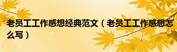 您好,今天帅帅来为大家解答以上的问题。老员工工作感想经典范文,老员工工作感想怎么写相信很多小伙伴还不知道,现在让我们一起来看看吧!