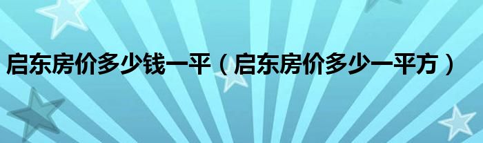 您好,今天帅帅来为大家解答以上的问题。启东房价多少钱一平,启东房价多少一平方相信很多小伙伴还不知道,现在让我们一起来看看吧!