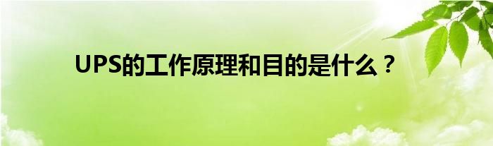 您好,今天帅帅来为大家解答以上的问题。UPS的工作原理和目的是什么?相信很多小伙伴还不知道,现在让我们一起来看看吧!