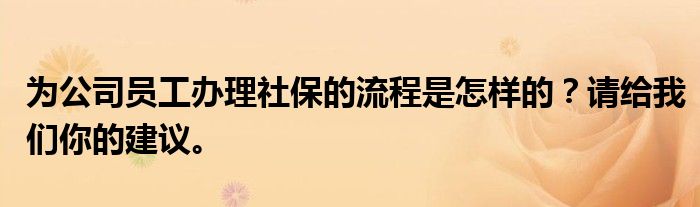 您好,今天帅帅来为大家解答以上的问题。为公司员工办理社保的流程是怎样的?请给我们你的建议。相信很多小伙伴还不知道,现在让我们一起来看看吧!