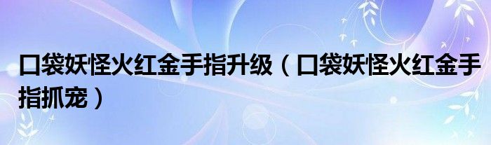 您好,今天帅帅来为大家解答以上的问题。口袋妖怪火红金手指升级,口袋妖怪火红金手指抓宠相信很多小伙伴还不知道,现在让我们一起来看看吧!