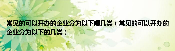 您好,今天帅帅来为大家解答以上的问题。常见的可以开办的企业分为以下哪几类,常见的可以开办的企业分为以下的几类相信很多小伙伴还不知道,现在让我们一起来看看吧!