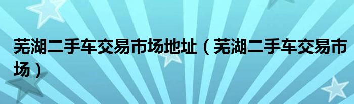 您好,今天帅帅来为大家解答以上的问题。芜湖二手车交易市场地址,芜湖二手车交易市场相信很多小伙伴还不知道,现在让我们一起来看看吧!