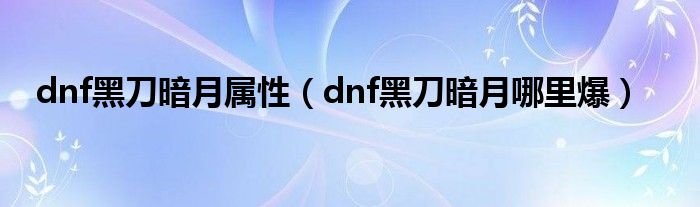 dnf黑刀暗月属性(dnf黑刀暗月哪里爆),麻烦给回复