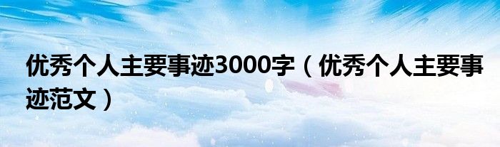 您好,今天帅帅来为大家解答以上的问题。优秀个人主要事迹3000字,优秀个人主要事迹范文相信很多小伙伴还不知道,现在让我们一起来看看吧!
