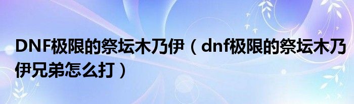 您好,今天帅帅来为大家解答以上的问题。DNF极限的祭坛木乃伊,dnf极限的祭坛木乃伊兄弟怎么打相信很多小伙伴还不知道,现在让我们一起来看看吧!