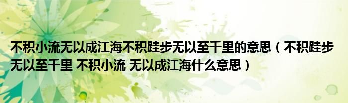2、积累一步半步的行程,就没有办法达到千里之远;不积累细小的流水,就没有办法汇成江河大海。