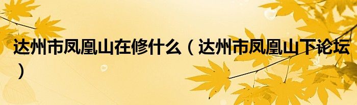 您好,今天帅帅来为大家解答以上的问题。达州市凤凰山在修什么,达州市凤凰山下论坛相信很多小伙伴还不知道,现在让我们一起来看看吧!