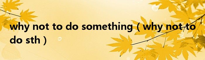 您好,今天帅帅来为大家解答以上的问题。why not to do something,why not to do sth相信很多小伙伴还不知道,现在让我们一起来看看吧!