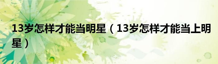 13岁怎样才能当明星(13岁怎样才能当上明星),这个怎么解决啊?快急疯了?