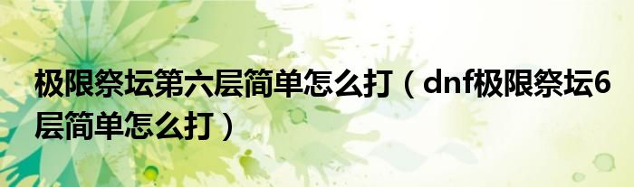 极限祭坛第六层简单怎么打(dnf极限祭坛6层简单怎么打),求解答求解答,第三遍了!