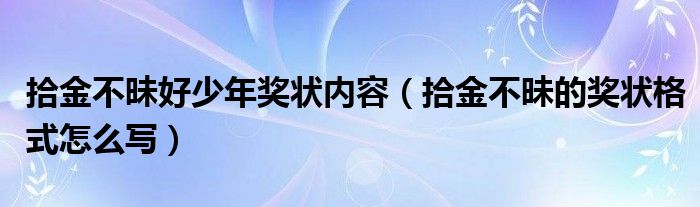 拾金不昧好少年奖状内容(拾金不昧的奖状格式怎么写),跪求好心人,拉我一把!