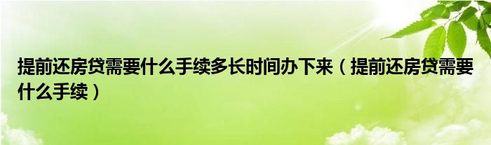 1、提前还房贷需要什么手续提前还贷流程与方式如下步骤:先查看贷款合同中有关提前还贷的要求,注意提前还贷是否须交一定的违约金。