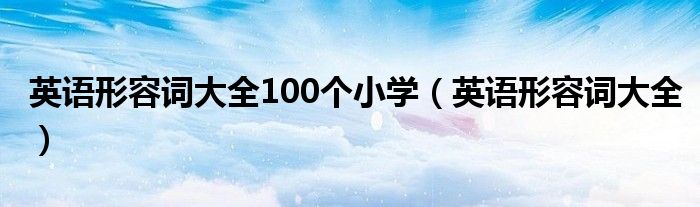 您好,今天帅帅来为大家解答以上的问题。英语形容词大全100个小学,英语形容词大全相信很多小伙伴还不知道,现在让我们一起来看看吧!