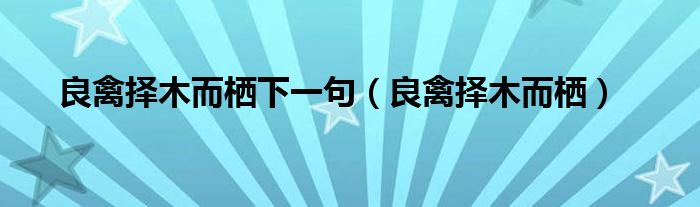 1、原意是指优秀的禽鸟会选择理想的树木作为自己栖息的地方。
