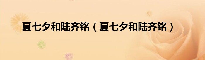夏七夕和陆齐铭(夏七夕和陆齐铭),真的急需答案,求回复!