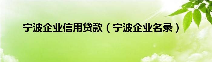 您好,今天帅帅来为大家解答以上的问题。宁波企业信用贷款,宁波企业名录相信很多小伙伴还不知道,现在让我们一起来看看吧!