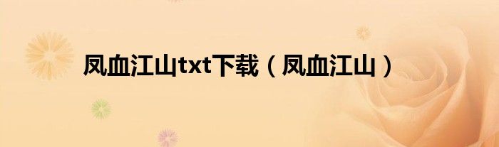 您好,今天帅帅来为大家解答以上的问题。凤血江山txt下载,凤血江山相信很多小伙伴还不知道,现在让我们一起来看看吧!