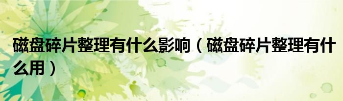 您好,今天帅帅来为大家解答以上的问题。磁盘碎片整理有什么影响,磁盘碎片整理有什么用相信很多小伙伴还不知道,现在让我们一起来看看吧!